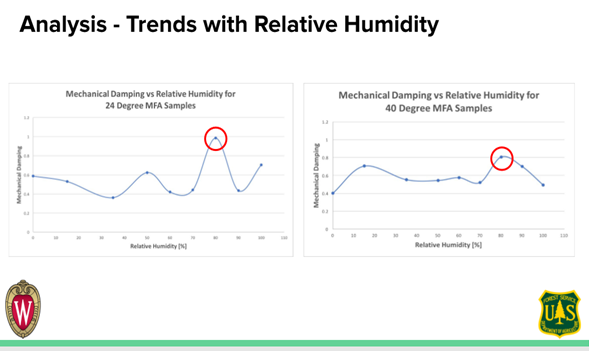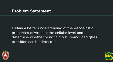 Project Overview: Wood is a hierarchical material with numerous structural features including growth rings at the millimeter length scale and cells at 10 micron length scale (1/1,000,000 meters). Classical elasticity theory (ex. Metals) is not sufficient to describe the elastic properties of wood when the size of the tested specimens approaches the size of a structural feature. Recent results at the USDA Forest Service Forest Products Laboratory (FPL) have shown a size effect caused by growth rings in pure bending when the cross-section of a bending specimen was reduced from about 30 mm to 5 mm. Similar effects are expected when testing mechanical properties of slivers of wood (50-100μm) that have different numbers of cells in their cross-section. This project will explore the size effects in wood mechanics either at the growth ring or wood sliver level. Design of experiments will be performed to determine the shear modulus and damping of the wood slinters with respect to humidity. The team will utilize testing equipment at FPL and conducted analysis with FPL researchers and experts.