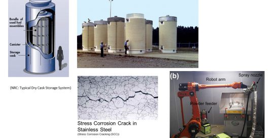 rehaas2020-05-26T10:44:34-05:00Project Overview: Spent nuclear fuel (SNF) storage in dry casks experience stress corrosion cracking (SCC) when stored for long periods of time in corrosive environments. Repair of SCC is needed in order to maintain the structural integrity and safety of the dry casks. Cold spray has been identified as a promising, scalable solution to the [...]